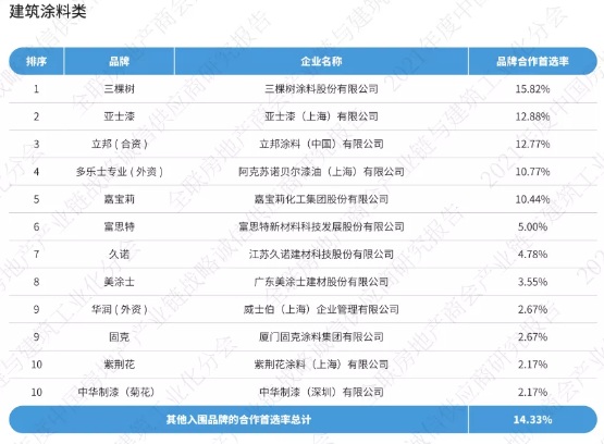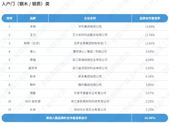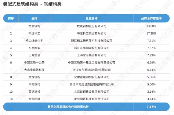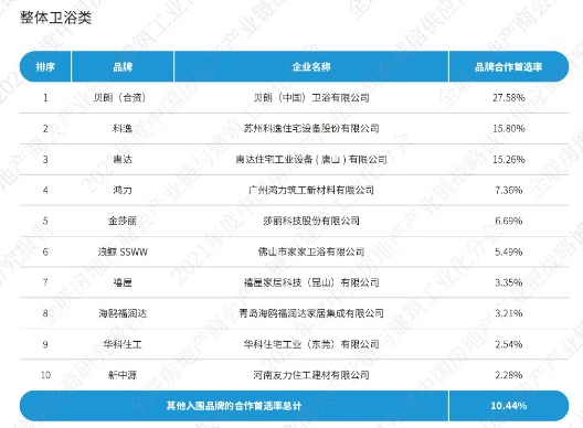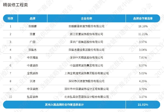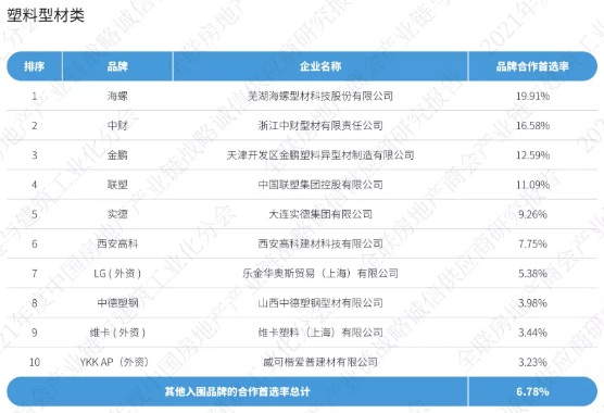 《2021中國房地產產業鏈戰略誠信供應商研究報告》通過征集、分享、篩選在中國內地從事房地產產業鏈相關經營活動的供應鏈企業,按照品牌力、產品力和合作力三大維度,從品牌知名度、綜合實力、核心競爭力、研發實力、產品品質、戰略合作量、服務能力七大角度出發,以會員推薦、實地調研、問卷訪問、專家評審等途徑方式對供應鏈企業與我國TOP200房地產企業以及商會房地產會員企業的戰略合作情況,進行品牌首選率統計計算。