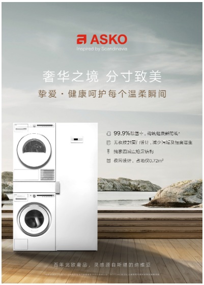 百年奢品ASKO,以百年匠心筑造品質(zhì)人居,與時(shí)偕行,不斷追求卓越的洗護(hù)理念,打造一系列兼具頂級(jí)設(shè)計(jì)與一流功能的高端品質(zhì)家電。伴隨健康生活風(fēng)潮的興起,全社會(huì)對(duì)衛(wèi)生、除菌、凈化標(biāo)準(zhǔn)不斷提升,衣物健康洗護(hù)獲得更多消費(fèi)者的青睞。ASKO衣物護(hù)理四件套助力精英人士打造潔凈無菌的洗護(hù)環(huán)境,呵護(hù)每個(gè)溫柔瞬間,使每一次自我擁抱的儀式更安心。