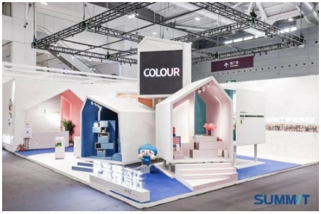 在1號館的哈爾濱工業大學學院x杰恩設計的展位內,定制了幻彩卡樂板懸掛裝置和長凳。幻彩卡樂板和交互設計相結合,帶來更多的設計變化,更具未來感。