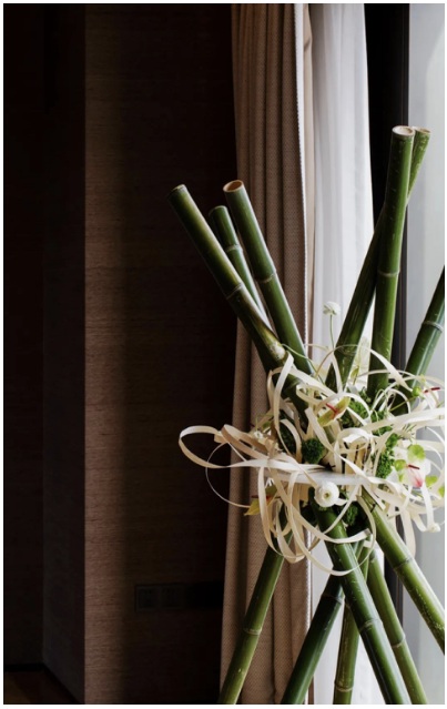 羽ASPLUME主理人姜輝先生為這場別趣橫生的展覽定制了“春”系列節氣裝置。將二十四節氣裝置的主旨提煉并加以升華,通過春竹、夏花以及現代材料相結合,演繹出了春天的生機靈動,塑造出了自然中生命的力量與堅韌。