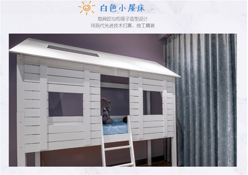 現在的孩子們有很多奇思妙想,父母為了保護孩子的創造力,會將兒童房裝修得更加有趣、有創意。這款兒童床采用的就是木屋的設計。白色木屋床自然、質樸,做工精湛,可以讓小孩在家里就能體驗攀爬的樂趣。這樣趣味的設計,不僅讓小孩對兒童房有更多的歸屬感,還能夠讓小孩與父母分房睡時,減少抗拒和排斥的心理。