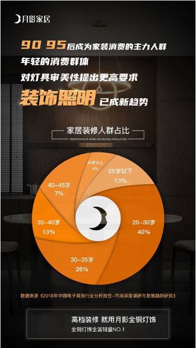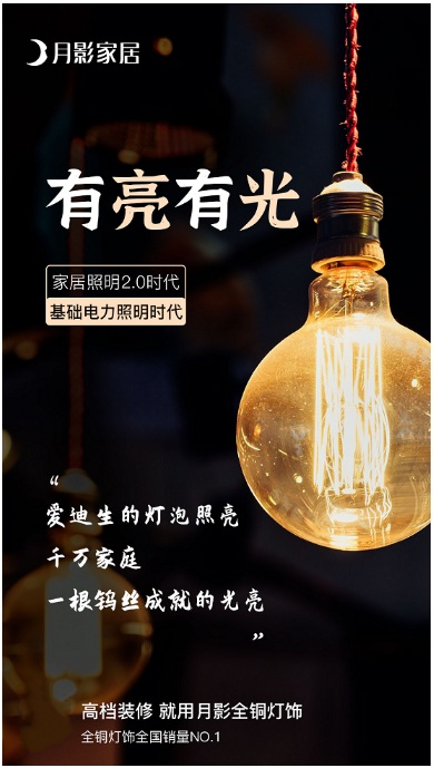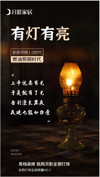 這個時候,燈具照明行業明顯出現了兩大分類:裝飾照明和功能照明,類別不同,功能屬性也不同。其中,功能照明是純粹用做照明、取光,而裝飾性照明不僅具有照明取光的作用,而且外觀精美,可以作為家里的裝飾品。歐普、雷士的產品主打的就是功能照明,產品在外觀上偏簡潔化,注重實用性。說到另外一個分類的裝飾照明,新銳品牌月影家居是這個行業里面的第一,雖然起家只有十余年,但是在全銅裝飾燈這個細分品類里面有著堅不可摧的地位。