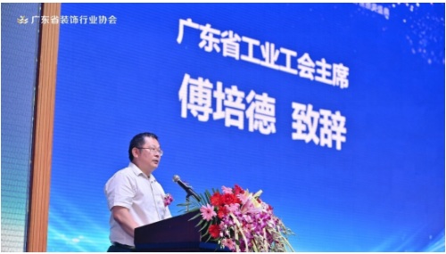 省工業工會主席傅培德同志為理事長單位:廣東省裝飾行業協會、順德職業技術學院設計學院頒發聘書。