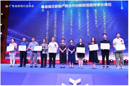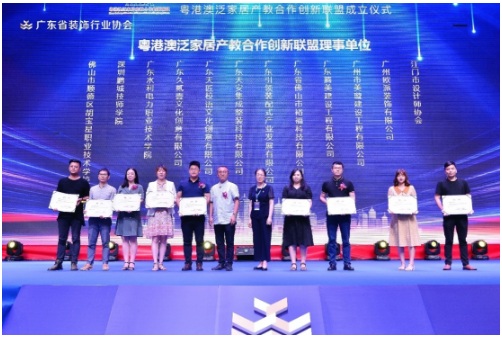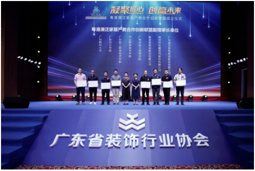 聯盟的理事長單位順德職業技術學院設計學院院長姚美康、廣東省裝飾行業協會秘書長、黨支部書記郭爽為理事單位:佛山市順德區胡寶星職業技術學校、深圳鵬城技師學院、廣東水利電力職業技術學院、廣東久貳壹文化創意有限公司、廣東天匠校語文化創意有限公司、廣東天安集成整裝科技有限公司、廣東引領裝配式產業發展有限公司、廣東省佛山市裕福科技有限公司、廣東騰美建設工程有限公司、廣州市美璇建設工程有限公司、廣州歐派裝飾有限公司、江門市設計師協會頒發聘書。