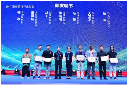 倡導健康工作、健康生活,關愛從業人員的身心健康,是協會一貫的理念。在大會上,廣東省裝飾行業協會也向各體育隊伍新任隊長頒發了聘書。希望他們為我省裝飾設計行業工作者的強身健體做出一定的貢獻。以下為部分到場的體育隊伍領導: