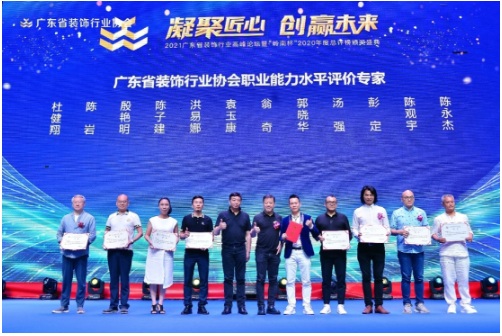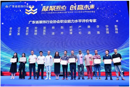 為了做好協會及廣東省裝飾行業職業能力水平評價工作,為行業培訓、選拔人才,協會成立了第四批協會專家及第二批廣東省裝飾行業協會職業能力水平評價工作專家隊伍。在盛典現場,為到會的部分協會專家及評審團專家頒發了證書。