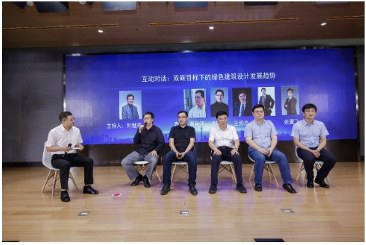 在互動對話環節,主持人邀請了中國建筑設計研究院有限公司副總建筑師仲繼壽,華東建筑設計研究總院總建筑師黃秋平,中國建筑設計研究院有限公司綠色建筑設計研究院院長、總建筑師劉恒,山東建筑大學原黨委書記、教授王崇杰,龍焱能源科技(杭州)有限公司董事長吳奔,保定嘉盛光電科技有限公司總經理張翼飛上臺,共同探討綠色建筑的發展趨勢以及光伏將扮演什么樣的角色。