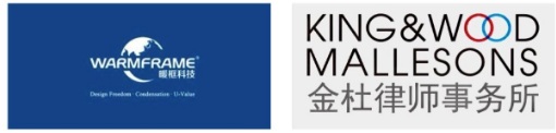 近日,全球幕墻隔熱毯技術領先制造商暖框科技與King & Wood Mallesons金杜律師事務所在京簽署合作協議。
