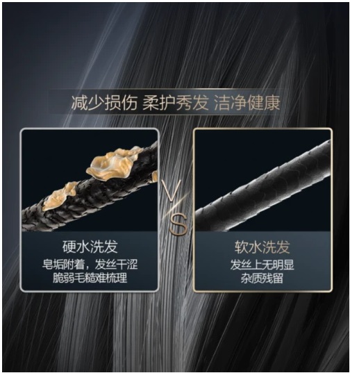 而被軟水潤養的頭發也能煥然新生,發絲沒有皂垢殘留,有助于毛鱗片閉合,讓秀發更加柔順。頭皮不會被皂垢堵塞毛孔,就能更加清爽,水油平衡也得以穩定。健康的頭皮,順滑的秀發,讓你時刻狀態在線。