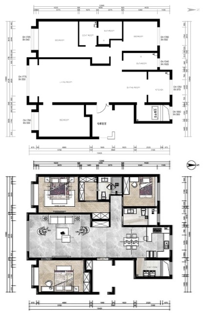 房屋原始戶型,空間有諸多浪費,部分空間利用不合理,過道較為狹長,收納空間少等,這些問題都需要解決。