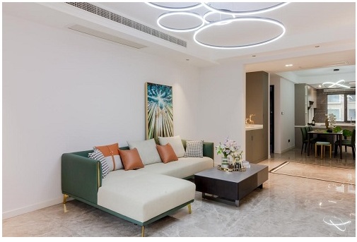 整個客廳看上去比較清新淡雅,白色寬大的轉(zhuǎn)角布藝沙發(fā),成為整個客廳布置的焦點,加上綠色植物的陪襯,客廳看上去時尚又簡約。