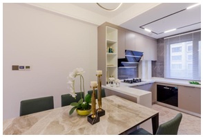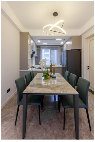 開放式廚房將實用美觀的餐桌與廚房緊密相連,形成一個開放的烹飪就餐空間,營造出溫馨的就餐環(huán)境,讓居家生活的貼心快樂從清早開始就伴隨全家人。