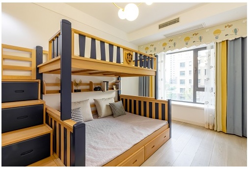 孩子的童話啟蒙,是家人的睡前故事,是小小窩里的幻想。兒童房以卡通形象為主題,綜合黃色與藍色,創(chuàng)造出一片夢幻的童話世界。