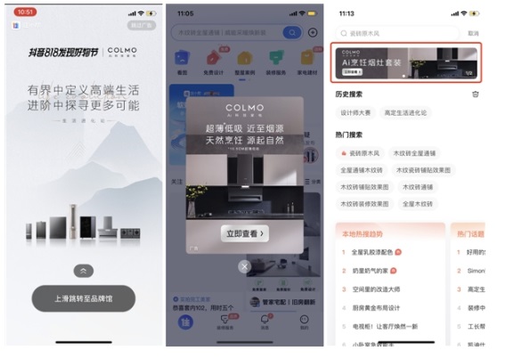 品牌營銷若要形成更廣泛的傳播覆蓋和更精準的人群觸達,把一個平臺的傳播做深、做透是關鍵,這樣才能成為一群用戶一段時間內最深刻的記憶。COLMO搭載設計師大賽的億級強曝光資源,獲得了品牌聲量和產品知名度的強勢拉升,在住小幫平臺的品牌力處于行業領先位置,整體聲量超出行業第二的21倍之多。整場營銷活動,COLMO僅通過開屏廣告就收獲了143萬+曝光、4.8萬+點擊,定制頻道更是斬獲785萬+曝光、10萬+點擊,COLMO也通過彈窗資源吸引了6.8萬+用戶點擊、242萬+曝光,搜索頁banner、首頁信息流等同樣為COLMO帶來了不俗的聲量。