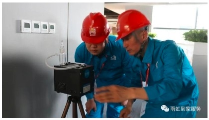 圖注:雨虹到家工人進(jìn)行空氣檢測