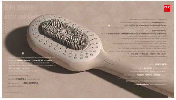 ORI系列搓淋按摩花灑具備CMF設計所要求的創新性、美觀性、功能性、落地性、環保性與情感性六大維度,在色彩上以整體中性自然色系,豐富視覺層次;在材料上,創新運用植物纖維環保注塑材料,如椰子殼纖維、黃麻纖維、稻殼、活木等,還原天然纖維的自然色澤、氣味與觸感;在工藝上,精心設計的手柄長度、角度,刷頭采用可替換拆卸結構、可選擇不同軟硬刷頭以及多種水形切換,都帶來升級的搓澡享受,賦予消費者重回自然的親切與歡愉。