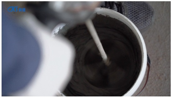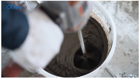 將KS-C105大磚型瓷磚膠粉料與水按1:0.2~0.25比例混合
