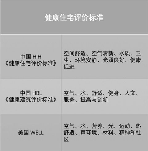 關(guān)于健康住宅的標(biāo)準(zhǔn)有國(guó)內(nèi)外多個(gè)版本,國(guó)內(nèi)房地產(chǎn)企業(yè)經(jīng)常參考的是HiH、HBL與WELL。這些評(píng)價(jià)標(biāo)準(zhǔn)中的衡量指標(biāo),大致可以歸納為空氣、水、光環(huán)境、聲環(huán)境、熱環(huán)境、人文環(huán)境、服務(wù)等方面。如今的房產(chǎn)項(xiàng)目大多在空氣、水、光、聲等維度實(shí)現(xiàn)了高標(biāo)準(zhǔn),即保障居民生活中的環(huán)境健康。未來住宅應(yīng)該以更主動(dòng)的方式去關(guān)注、管理個(gè)人健康生活,將健康關(guān)口前移。