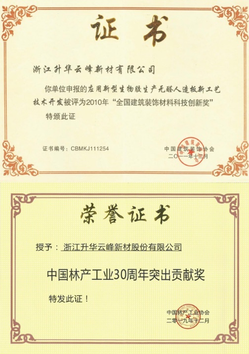 2018年,經由工業和信息化部直屬的中國信息通信研究院以及省級工業和信息化主管部門評估、專家論證,莫干山板材入選工業和信息化部《第三批綠色制造名單》,榮獲“國家級綠色工廠”認證。