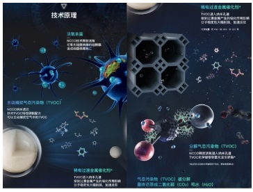 NCCO氧聚解技術(shù)是一種持續(xù)可循環(huán)的空氣處理技術(shù),它能通過機器的活氧發(fā)生器產(chǎn)生的活氧和NCCO氧聚解濾芯中的斜發(fā)沸石納米孔道的重金屬還原劑,一起將細(xì)菌病毒滅活和分解成水和二氧化碳,沒有濾芯反釋放細(xì)菌病毒的風(fēng)險。