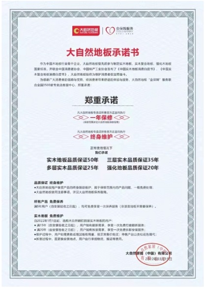 (大自然地板于2022年發布用戶保障承諾書)
