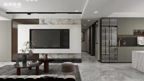 添一盞精致藝術燈,典雅花紋背景墻與裝飾柜夢幻聯動挑起客廳大梁,搭配質感大理石地臺,收納展示雙線滿足,隨即打響獨特治愈卻不失意味的空間韻律。