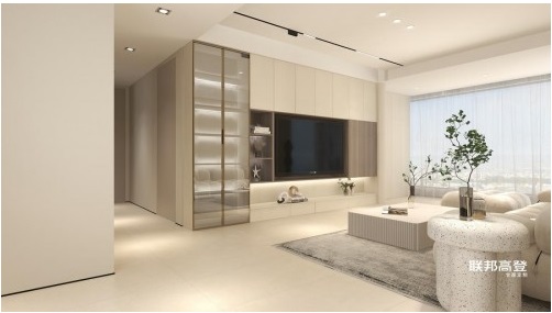 輕輕在空間內倒入一匙夢幻的奶油色調,調配出理想家的輪廓;電視背景墻以輕盈相搭帶來賞心悅目,慵懶時光下,讓感官與功能相諧。