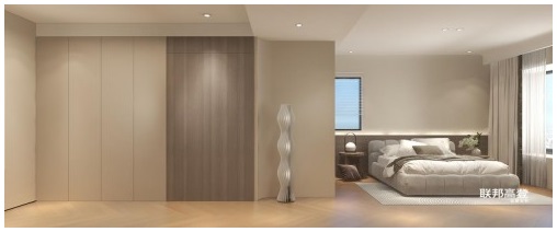 主臥去繁從簡,讓舒適自然的氛圍貫穿休憩空間;將家居好手護墻板與原木色隱形門自然搭配,像是沖泡好一杯濃濃的醇香咖啡,帶來更溫柔迷人的感觸,于靜默中安放疲憊的靈魂。