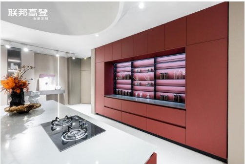 聯邦高登以敏銳視角深入關注用戶精神需求,匠心打造2022新品【慢生活】系列。其中開放式餐廚設計尤其吸睛無數,在材質與色彩的運用上新穎大膽,以浪漫復古感的瑰夏紅配色亮眼登場;在創新飾面工藝的攻克下,多種材質實現家居氛圍在視覺上的克制、質感上的放肆嶄新突破。將餐廚空間打造更具浪漫溫度,讓人對繁復的烹飪過程始終保有熱情與耐性、恰到好處。