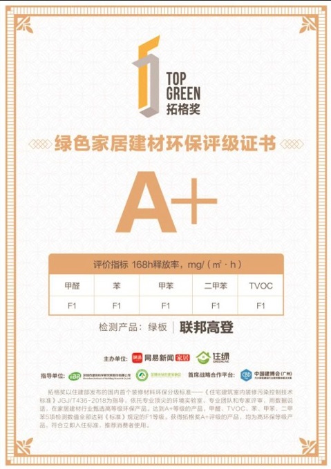 聯邦高登一直嚴己恪守著對用戶的綠色承諾,在 2014 年 3 月便在業內率先推出了“綠板”,板材環保等級實現了從E1級到E0級的綠色升級,并在2019年-2021連續三年獲得了拓格獎“A+”級認證。同時還以開展【綠色價值時代】為題,舉行【綠色者】系列大型公益活動,從不同的綠色環保議題與角度出發,探討綠色環保生態的深刻意義,用實際行動來印證對環保長期堅守的決心。