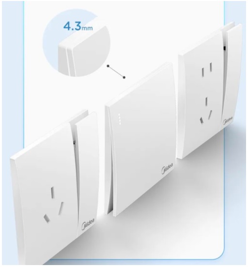 相較于傳統(tǒng)可厚至10-20mm的開關,美的天際系列開關插座最小厚度僅有4.3mm,纖薄的身形使其安裝在墻上后近乎“隱身”,家裝視覺效果更加平整和諧。它的外形為無邊框設計簡約大面板設計,整體線條更為流暢自然,配有珍珠白、星空灰兩種顏色,與北歐風、現(xiàn)代簡約風、輕奢風等多種家裝風格都十分百搭,盡顯用戶高端的家居品味。