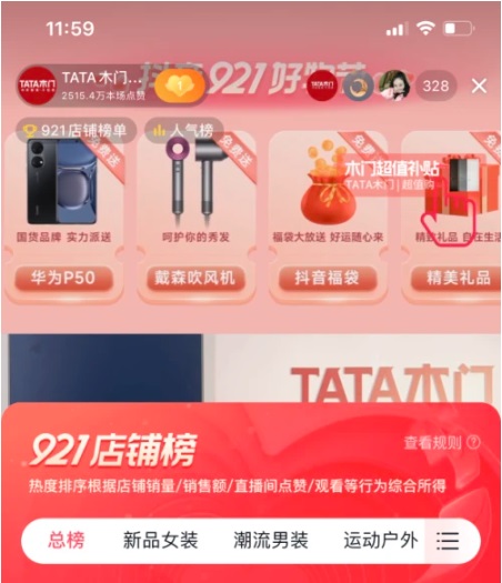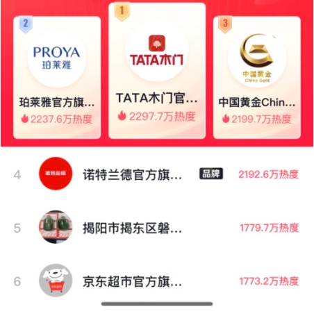 作為高度非標、強定制屬性的木門產品,TATA在921抖音好物節期間2次超越美妝、快消品牌,占據店鋪排行榜第一名。