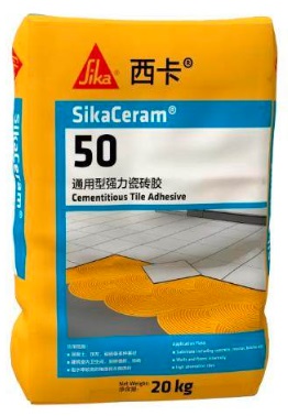 SikaCeram®-50通用型強力瓷磚膠,適用于混凝土、抹灰、砌磚等多種基材,涵蓋建筑室內衛生間、廚房墻磚、地磚、吸水率較高的釉面磚及陶質磚。