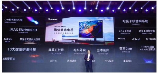 L5K是海信最新推出的百吋級巨幕激光電視,配備了100、110和120英寸三個尺寸段。除了3米可看百吋的優(yōu)勢,讓大部分家庭都可以擁有百吋巨幕的沉浸體驗(yàn),它還擁有如下特殊優(yōu)勢,是雙十一最值得選購的百吋大屏電視產(chǎn)品。