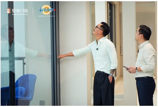 在主持人的邀請下,黃永才暢談設計理念,并強調家居空間中想要體驗視覺美感,門窗尤為重要。因此,當黃永才體驗到亞運100雙內開窗時,便對其內外框扇齊平的設計連連稱贊,他表示,“顏值經濟時代,皇派門窗通過門窗實現空間擴容與采光觀景的雙重享受,釋放更多遐想,展現出設計強大的力量與多樣的面貌!