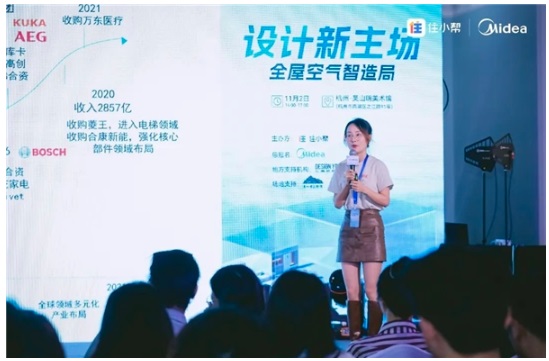 隨后吳佳娜女士從美的集團的發展歷程展開分享,其從美的集團的研發趨勢、產品系列、旗下品牌等方面入手對美的集團的全線發展歷程和當下發展趨勢及未來發展走向進行了詳盡解讀。美的家用中央空調可以讓居者在家庭空間更便捷地享受智居生活,用戶可以通過智慧大屏控制全屋家電,完成聲光電的全屋控制。美的也將不斷加強與設計師的聯動,以創新與科技力量助力設計思維,呈現更多智慧空間。