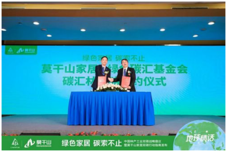 此外,莫干山家居與中國綠色碳匯基金會還進行了“碳匯林戰略”簽約儀式,雙方將協力在國內布局碳中和林和碳匯林示范項目落地,推動企業雙碳目標和ESF目標順利達成,為企業全面綠色發展轉型貢獻力量,為國內的林產工業企業率先布局碳中和行動做出表率。