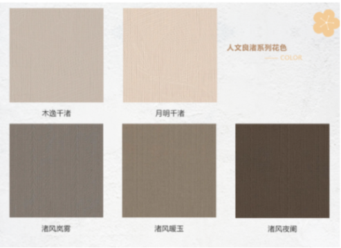 六大篇章,斑斕爭(zhēng)輝。整個(gè)人文良渚系列共分為幾何紋、石紋、純色、木紋、皮紋、皮紋六個(gè)子篇章,各具特色又相互輝映。而最具代表性的無(wú)疑是月明千渚、木逸千渚、渚風(fēng)暖玉等五款I(lǐng)P花色。將木之美學(xué)、詩(shī)之意境、渚之神韻完美融合,盡顯灼灼風(fēng)流。
