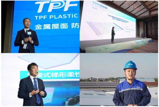 現場連線項目工地,實地展示TPF塑鋼瓦的標準化施工、精細化服務、專業化管理。TPF塑鋼瓦在金屬屋面系統中的優秀應用,贏得會場陣陣掌聲。
