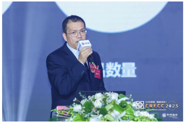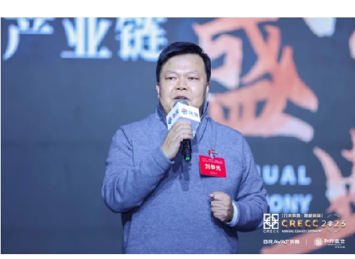 在年度盛典開幕致辭環節,2023 房地產產業鏈年度盛典——冠名單位領導:佛山和邦盛世家居有限公司副董事長劉爭光先生上臺致開場辭。