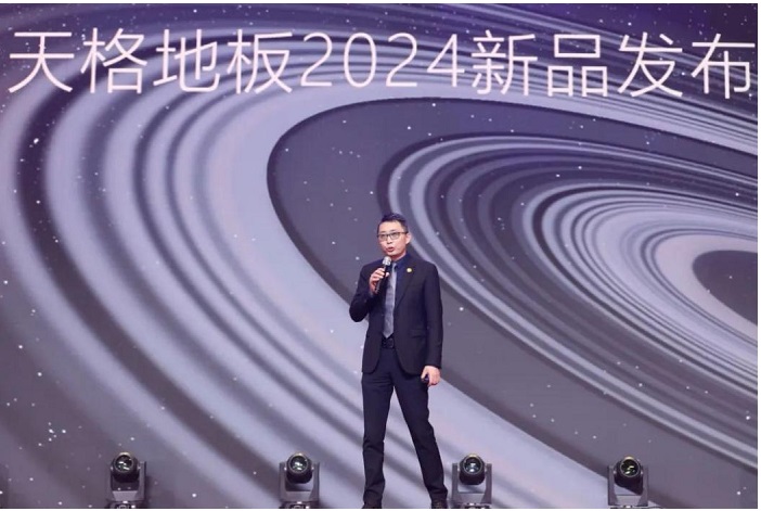 (圖:天格地板市場部部長金濤發布2024年新品)