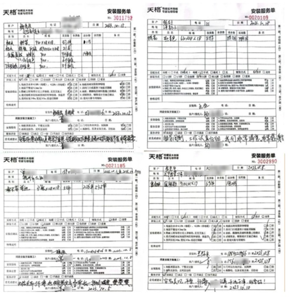 (圖:安裝服務單”上寫滿了用戶對天格服務的好評)