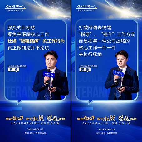 凝心聚力鼓干勁,砥礪奮進啟新程。2月8日-10日,以“堅定信心敢于挑戰跨越周期”為主題,2023年GANI簡一戰前動員大會在佛山希爾頓酒店圓滿舉行。