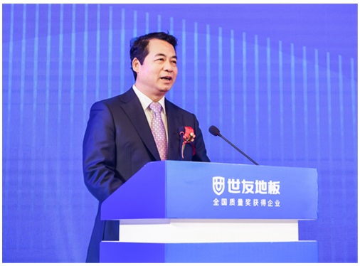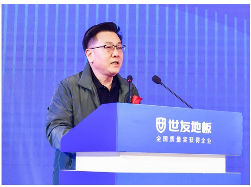 中國林產工業協會會長王滿先生發表講話,長期以來,他全面關注世友地板“健康”和“品質”的發展道路,高度贊揚世友關注人居健康、扛起“全健康大旗”社會責任感。相信在有關部門的大力支持下,在世友地板這樣的優勢領軍企業的引領下,木業行業一定能夠不斷突出重圍,走出一條綠色發展、高質量發展之路。