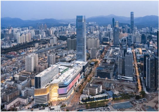 朝東是購物中心寶能第一空間,這是一個全新的現場藝術體驗目的地,聚集了260多個國際高端家具品牌。它融合了設計,生活和藝術元素,針對設計師,影響者和年輕一代。朝南是另一家購物中心寶能環球匯合,匯集了130多個沉浸式休閑體驗的創新品牌。