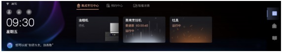 通過FIKS OS搭配的19寸超大中控屏,可以實現深度智控、娛樂烹飪、AI智慧語音:智控新集成可以一屏多用,深度控制全場景廚電設備;娛樂烹飪集成,借助套系廚電產品菜譜教學,一鍵烹飪,還有影音娛樂實時溫情陪伴;智慧語音交互則能實現全界面語音操控,可視可說,帶來全新交互體驗,更能一句話控制全場景廚電,讓烹飪更便捷、簡單。