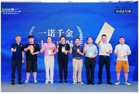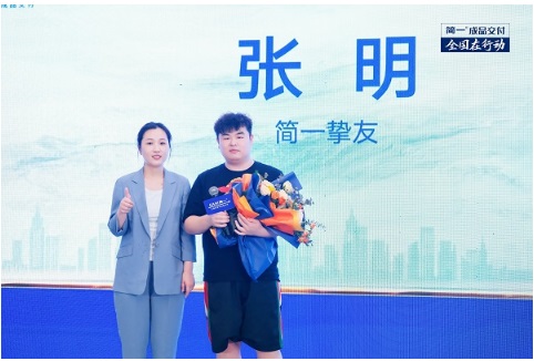 為了感謝摯友們信任和支持,現場特別舉辦成品交付10年質保金卡的贈送儀式,杭州楨成實業董事長、杭州簡一品牌服務商廖紹塔為客戶送上10年質保金卡,10年質保是簡一成品交付為客戶價值兜底的信心所在,未來我們將持續創新用戶價值,做好美好家的交付。