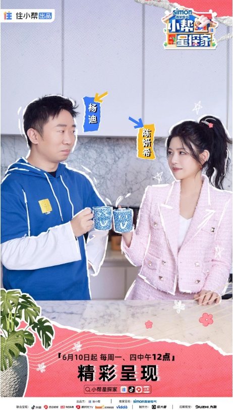 6月10日,首檔明星居家社交微綜藝《小幫星探家》上線。該節目由真實可靠的一站式家裝家居服務平臺住小幫出品,陣容集結幽默主持人楊迪、“跨界社恐歌手”毛不易、金句女王傅首爾、星星女神陳妍希、居住領域專家逯薇老師多位嘉賓。