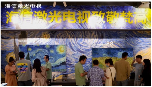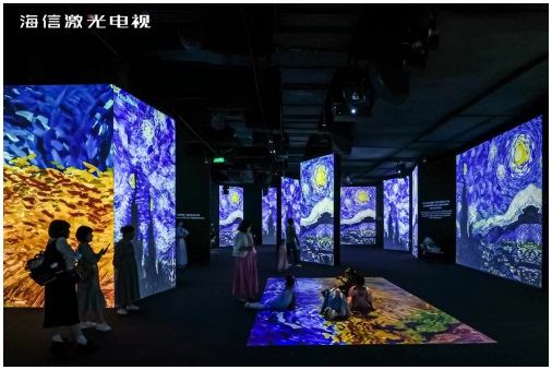 6月18日,海信激光電視攜手全球十大光影藝術展之一的「逐夢星月夜—致敬梵高」光影藝術展,在武漢夢時代廣場開啟“夢幻聯動”。展覽通過海信激光顯示技術,高清呈現梵高經典名作,為廣大觀眾帶來沉浸式觀展體驗,吸引眾多藝術愛好者打卡。