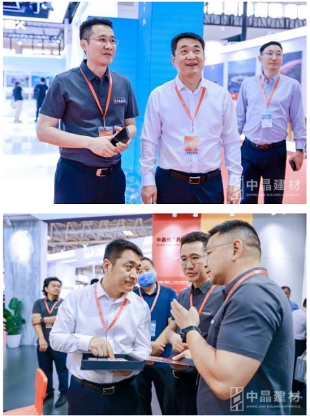 6月20日,海開控股集團(tuán)黨委副書記、總經(jīng)理馬光華,副總經(jīng)理付洪嶺,總經(jīng)理助理、成本控制中心總監(jiān)湯曉燕等相關(guān)領(lǐng)導(dǎo)來到中晶建材集團(tuán)展臺,仔細(xì)傾聽相關(guān)人員的介紹和講解,詳細(xì)了解產(chǎn)品性能,并對中晶板材的場景應(yīng)用和技術(shù)創(chuàng)新進(jìn)行交流。